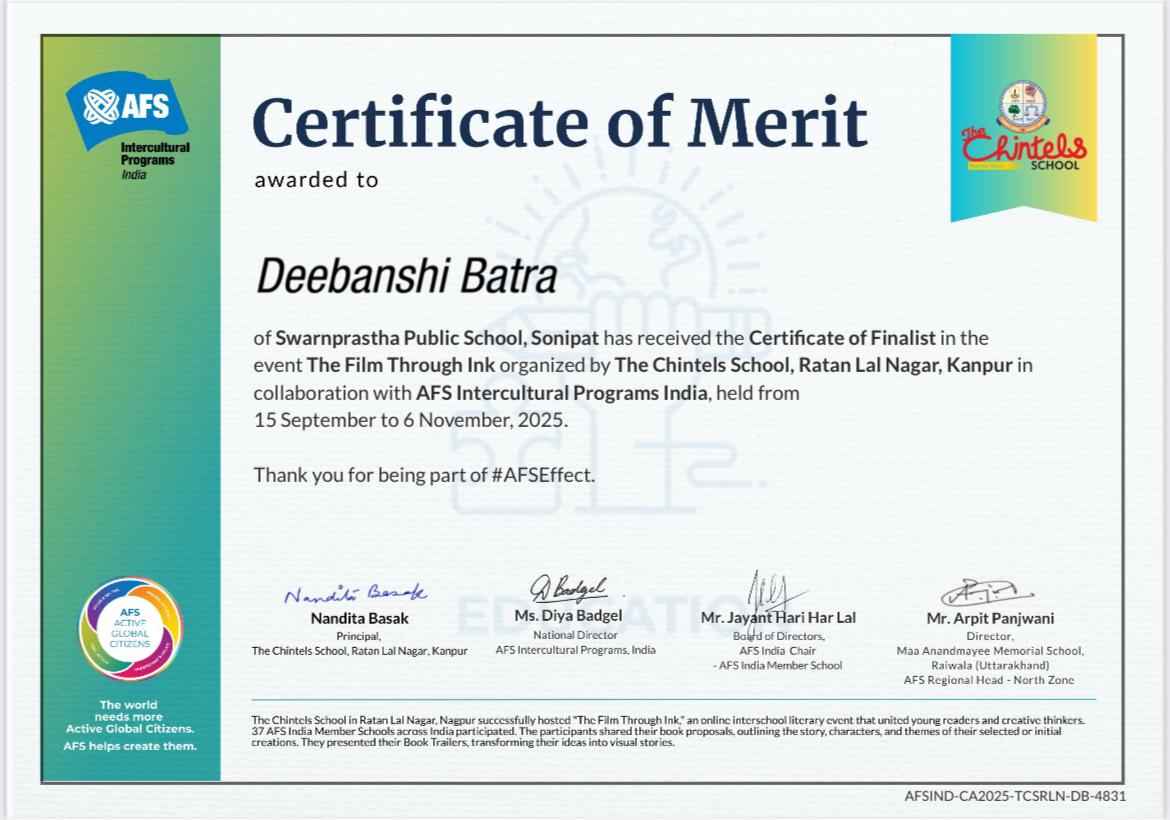 They rocked the The Film through Ink Book Pitch competition by AFS Intercultural Programs India! Their book The Thoughts That Were Never Mine, tackling real teenage issues, got them merit certificates!
