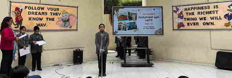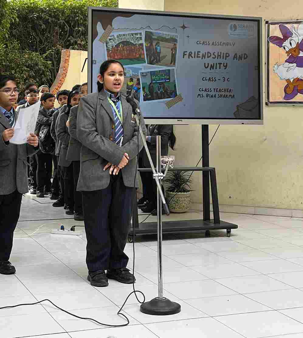 Class 3C delivered a heartfelt assembly centered on “Friendship and Unity.” It began with a moment of blessing, followed by a vibrant skit that illustrated the significance of support and sharing among friends. A touching poem emphasised love and togetherness. Ultimately, the presentation reinforced *Character Building*, a core element of the 3C module, leaving everyone inspired and uplifted.