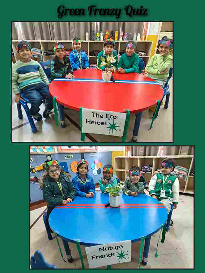 With curiosity, excitement and bright smiles, Green Frenzy Quiz was held for LKG and UKG students, creating a fun and engaging learning experience. Children eagerly answered questions about nature, plants and animals, while teams named Planet Protectors, Eco Avengers and Earth Buddies added enthusiasm to the event. It was a super fun way to get them excited about protecting our planet.