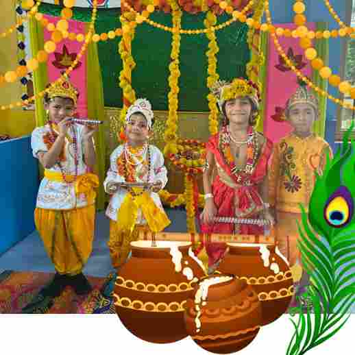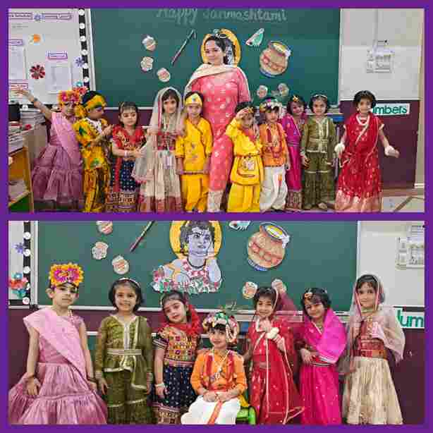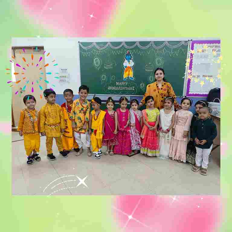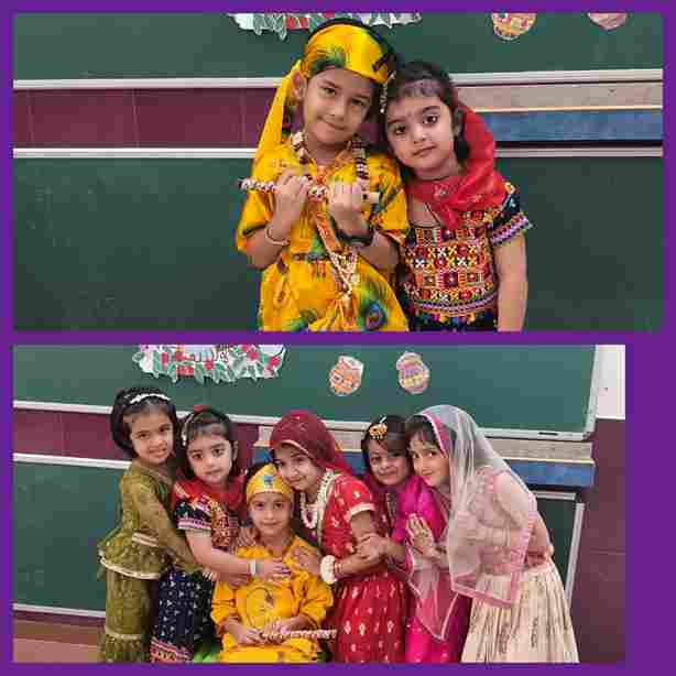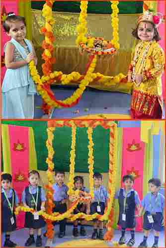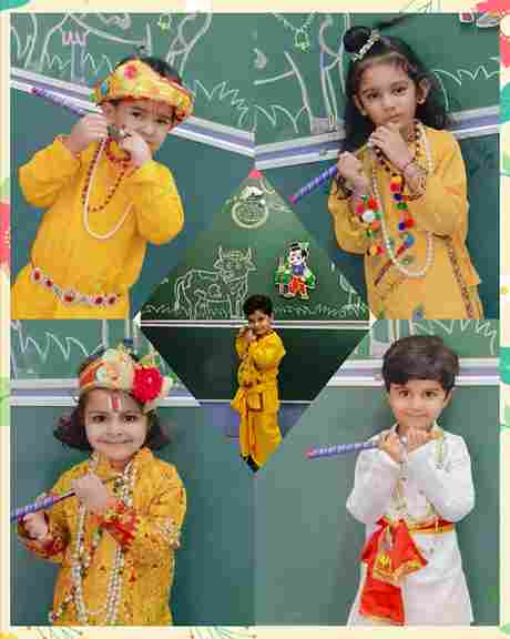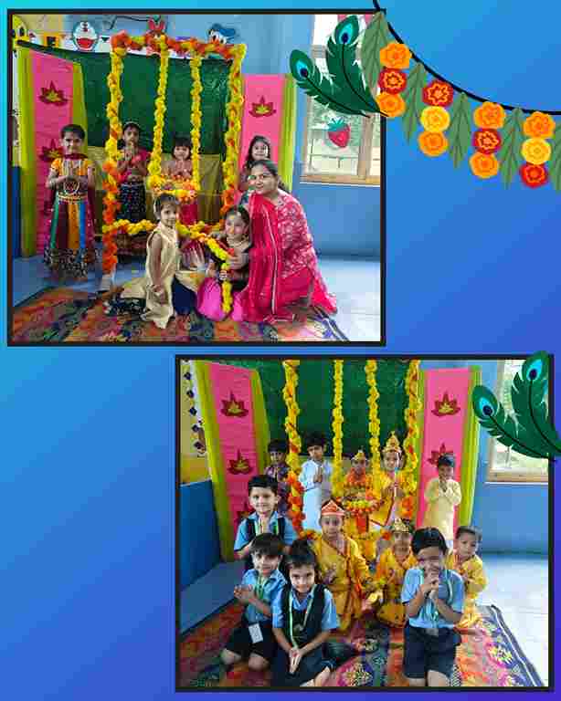 The Janmashtami Celebration at Swarnprastha Public School turned into a delightful spectacle as the youngest learners, from Nursery to UKG, embraced the spirit of the festival. Adorned in vibrant attire as little Krishnas and Radhas, the children radiated joy and devotion. Their performances, full of charm and innocence, brought the tales of Krishna’s childhood alive, leaving the audience enchanted and full of festive cheer.