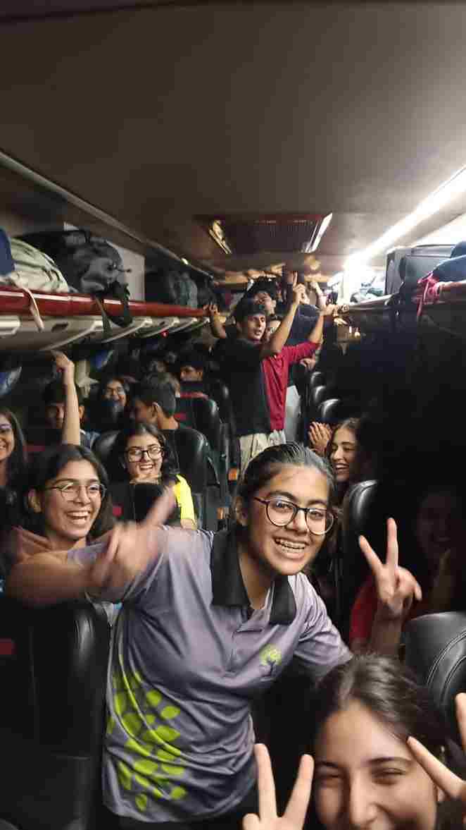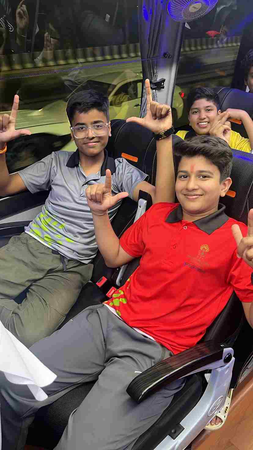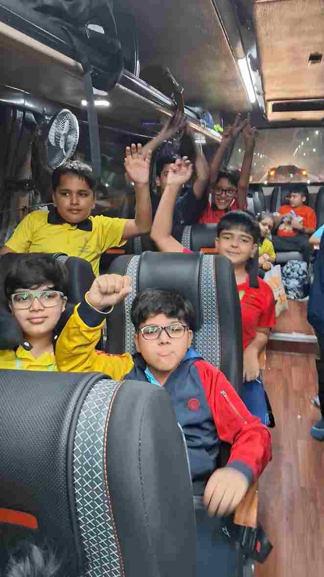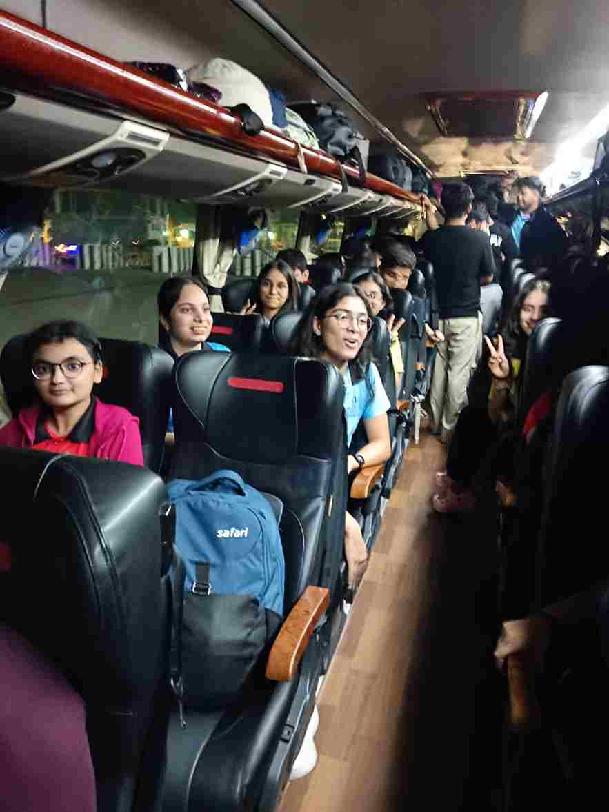 The Jodhpur adventure commenced with great enthusiasm as students from Classes 5 to 12 embarked on their much awaited road journey. Cheerful faces, lively chatter and songs filled the air as the buses rolled out, marking the start of an unforgettable experience. Teachers ensured a safe and joyful beginning, while students bonded over games and shared snacks along the way. The excitement for exploring the “Blue City” grew with every passing mile, setting the perfect tone for the memorable days ahead.