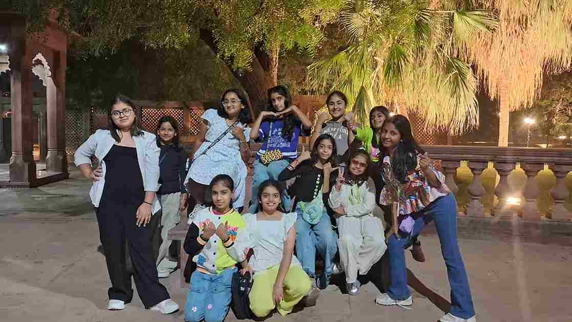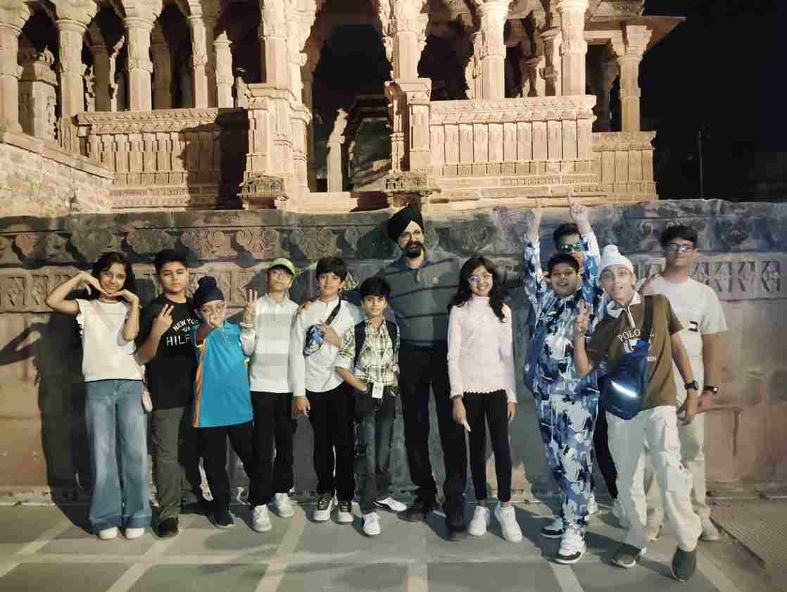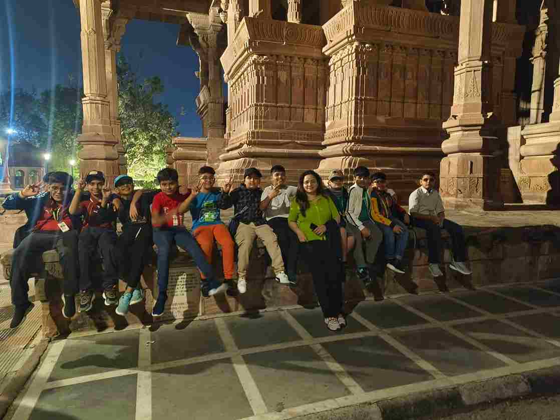 The day unfolded with joy and laughter as the Swarnprasthians posed for stylish pictures and savoured a delicious meal before setting out for Mandore Garden. As dusk settled, they were captivated by the enchanting *Light and Sound Show* that beautifully narrated the rich history and royal legacy of the Blue City. The magical play of lights and music against the ancient backdrop created a truly unforgettable experience — an evening where fun, flavour and heritage blended in perfect harmony!