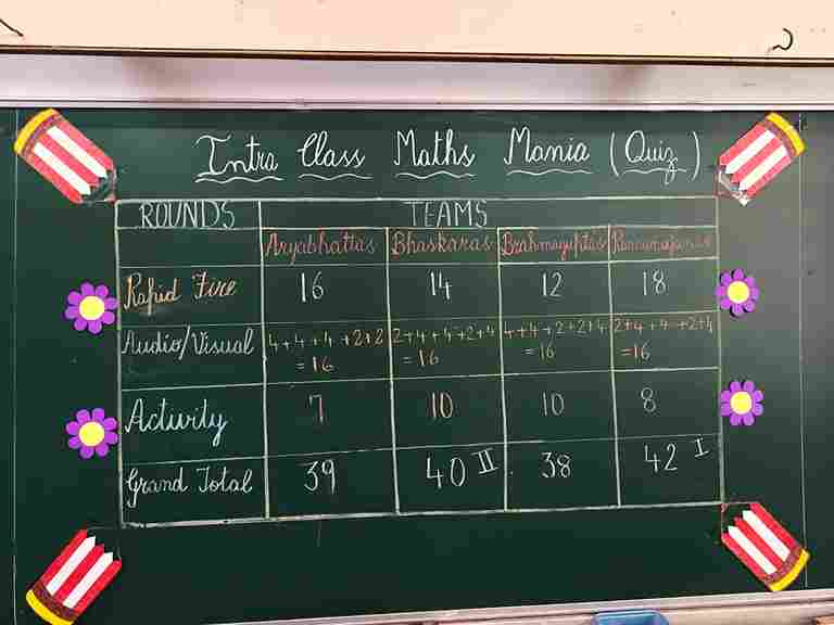 *Maths Mania* for classes 1 to 5 was organised in the school on 22 December to commemorate the birth anniversary of Srinivasa Ramanujan. The event aimed to promote interest in mathematics and inspire students through his life and contributions. Engaging activities such as math quizzes, puzzles, mental math, and problem solving tasks were conducted. Students participated enthusiastically, showcasing their logical and analytical skills. The celebration effectively strengthened students’ appreciation for mathematics.