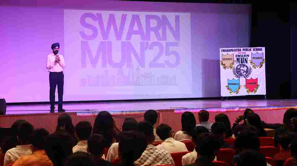 Day 1 of SWARNMUN at Swarnprastha Public School unfolded with a burst of action, unmatched energy and spirited debates on August 23, 2025. A total of 131 delegates from classes 6 to 11 dived headfirst into fiery discussions on the Kashmir dispute, rising youth unemployment, India’s three language formula, disarmament, climate change and global discrimination. The halls buzzed with excitement, every resolution was met with table thumps, cheers, loud slogans echoing through the corridors and the unstoppable enthusiasm of young minds eager to make a difference. And just when everyone thought the day couldn’t get better, the serious debates gave way to pure fun, delegates hit the dance floor, grooving to foot tapping music, ending the day with laughter, rhythm and unforgettable memories!