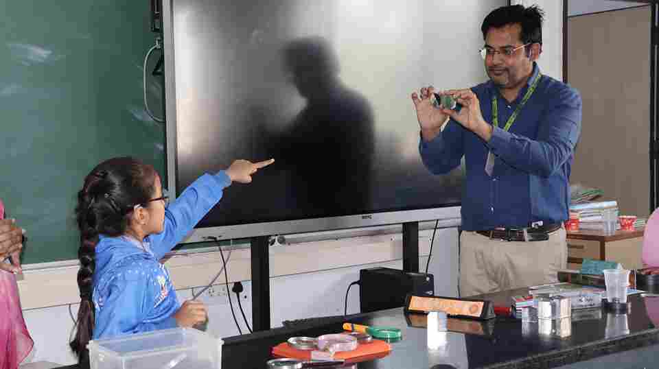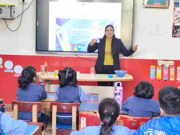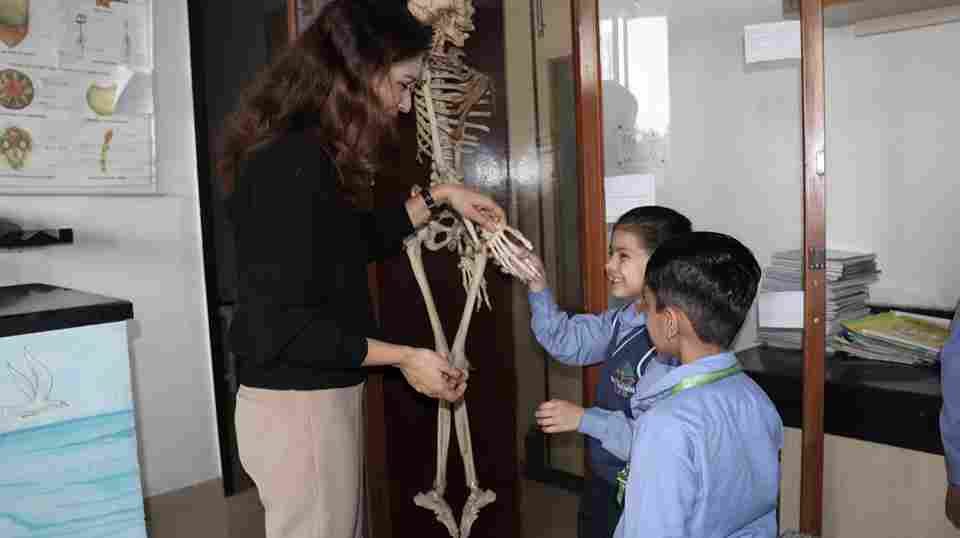 Our Class 1 and 2 students celebrated National Science Day with great excitement and curiosity. They visited the Physics and Biology Labs, explored instruments like the microscope and telescope, learned about the human skeleton and enjoyed viewing patterns through a kaleidoscope.