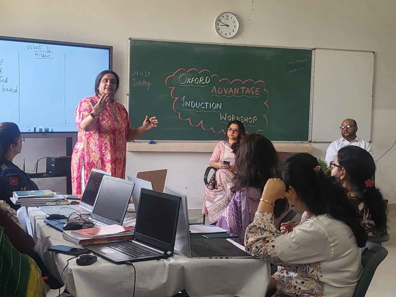An induction program was conducted on 29 April, 2025 by Oxford Advantage to familiarise educators with the use of their LMS (Learning Management System) portal. The session provided valuable insights into how to effectively access and navigate the digital content available on the platform. Participants were guided through the login process, content retrieval methods and key features designed to enhance teaching and learning experiences. The workshop proved to be highly informative, equipping attendees with the necessary skills to integrate digital resources into their educational practices.