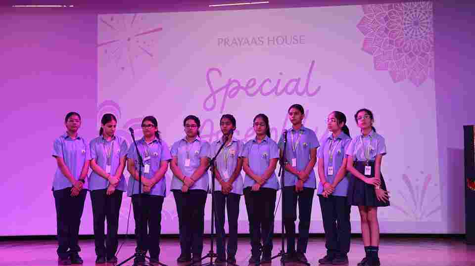 Swarnprastha Public School came alive with festive spirit as it celebrated Diwali through a vibrant special assembly on 17 October 2025 for Classes 6 to 10. The morning began with a soulful prayer, filling the atmosphere with devotion and joy. Students captivated everyone with an energetic dance and a powerful role play highlighting how the warmth of human connection is sadly giving way to the frenzy of virtual bonds. A thrilling Ramayana quiz kept the audience on their toes, sparking enthusiasm and learning. The celebration concluded with a heartfelt and fiery rendition of the National Anthem.