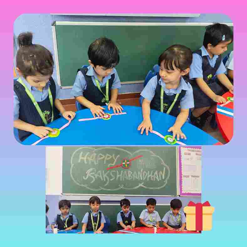 Our little stars from Nursery to UKG celebrated the spirit of Raksha Bandhan with creativity and love! Mini artists crafted beautiful rakhis, showcasing their imagination and festive cheer. It was a heartwarming activity that brought smiles, joy and a whole lot of sibling love!