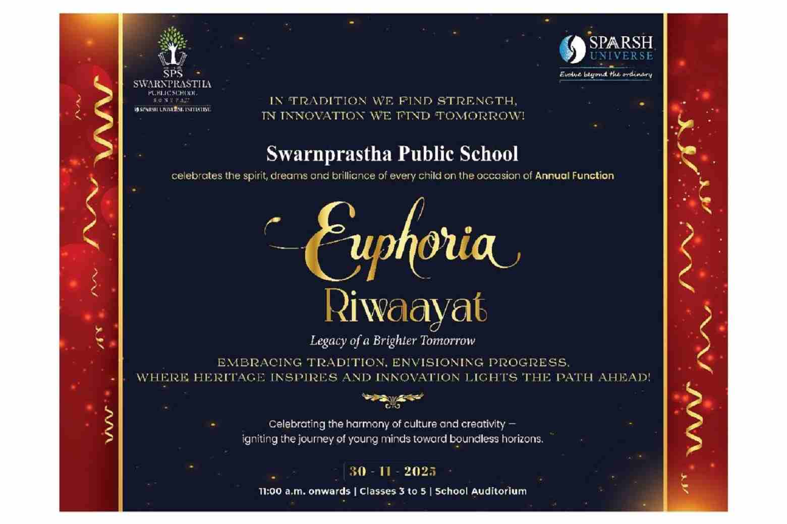 The auditorium of Swarnprastha Public School pulsed with vibrant Euphoria on 30 November 2025, as " Riwaayat ": Legacy of a Brighter Tomorrow, swept like wildfire through its corridors, igniting every heart.