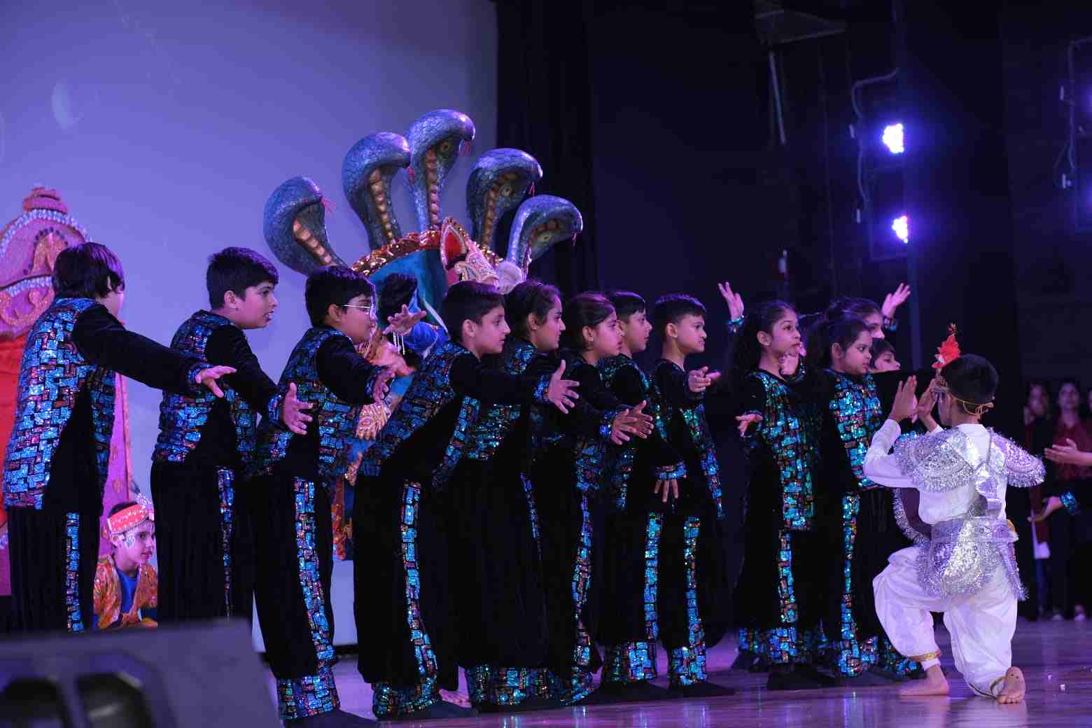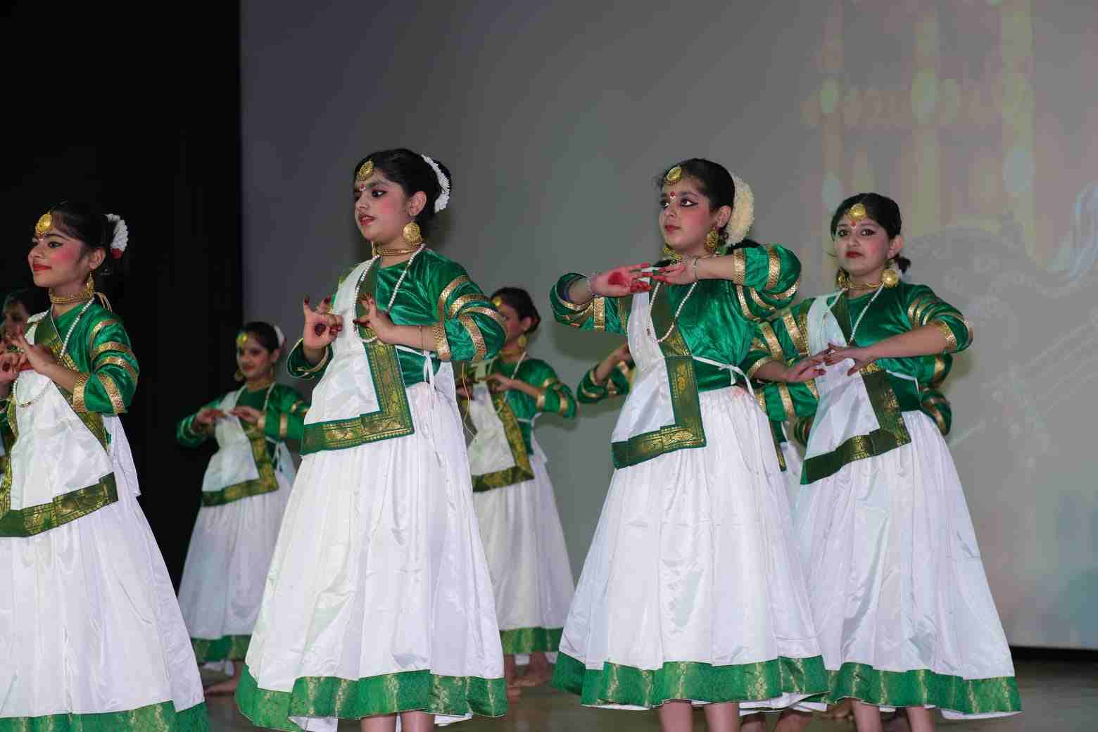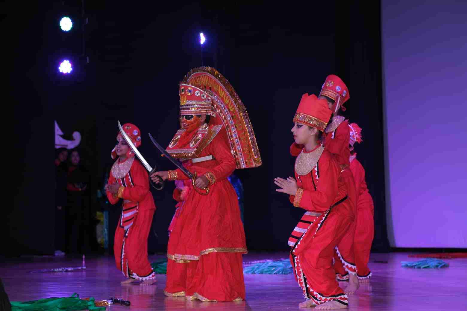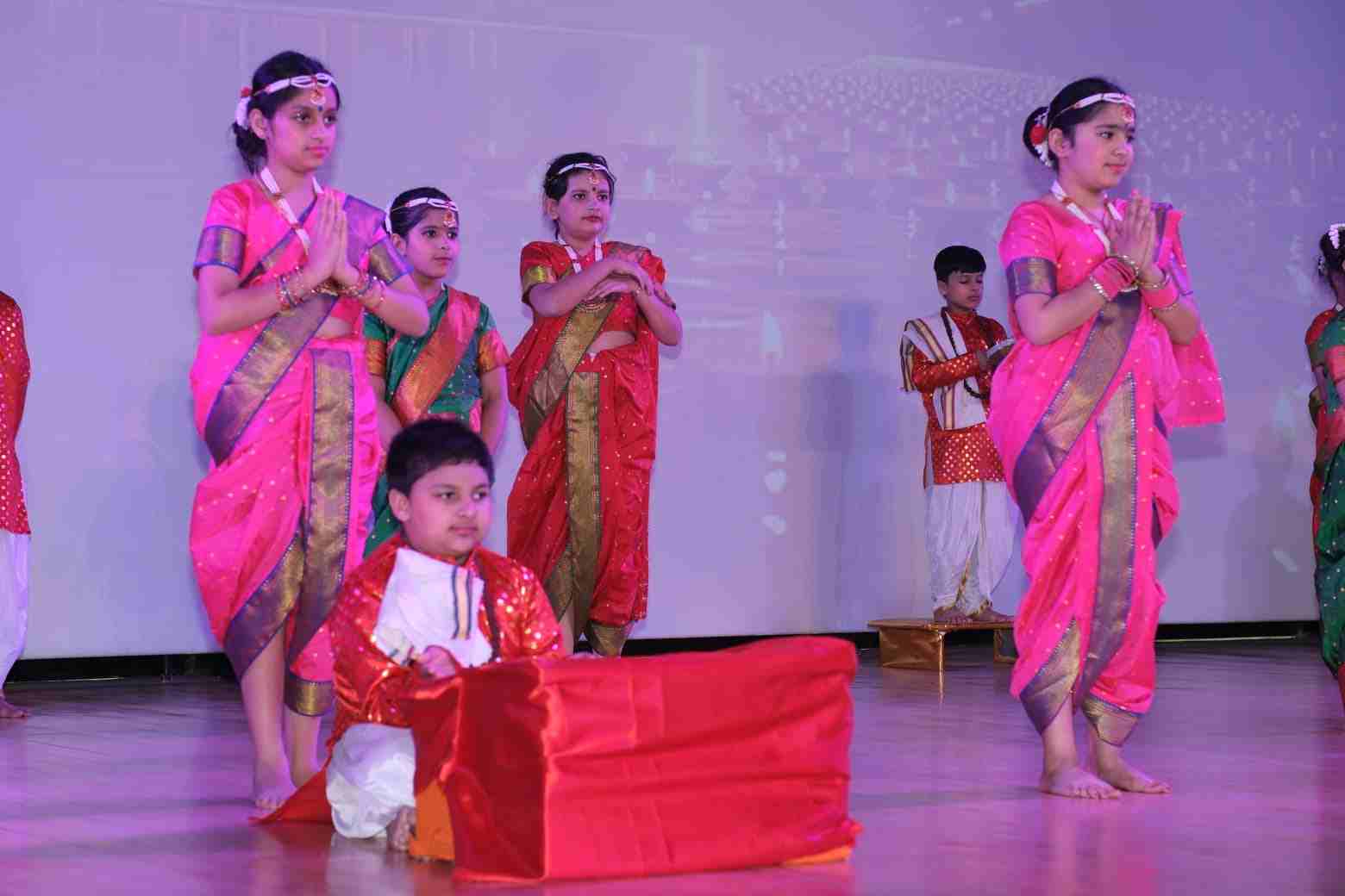 Classes 3 to 5 held the audience spellbound with a flowing tapestry of performances celebrating India’s timeless heritage: a folk dance radiant with Rajasthan’s spirit; the inspiring journey of an eternal yogi embracing health through yoga; Bahi’s tale of digitising ancient scriptures on sacred riverbanks; the craftsmanship and legacy of tanpura makers; Theyyam’s swirling blessings; the moving saga of duaaon ki safar symbolising the unbreakable parent child bond; celestial murmurings of Krishnavaani and a heartfelt tribute to our steadfast protectors guarding our borders. All acts culminated into a grand finale echoing unity and pride.