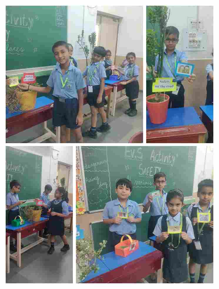An interactive activity on “Safety at Various Places” was conducted for Grade 2 students to help them understand the importance of following safety rules in everyday life. The session began with a lively discussion, followed by an engaging and informative video. Students participated enthusiastically and learned about safety measures to follow at different places such as home, school, the road and the playground.