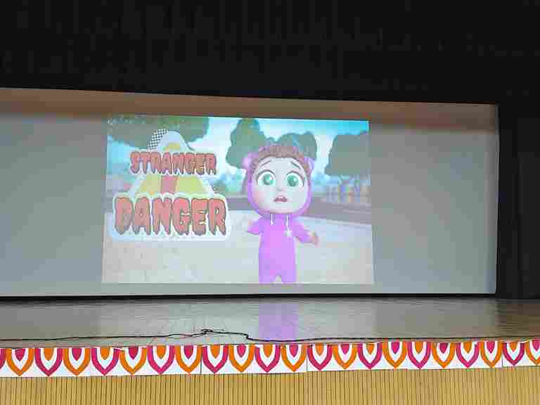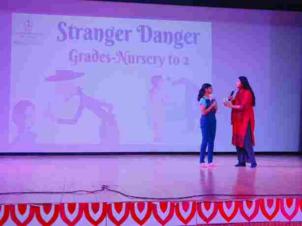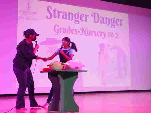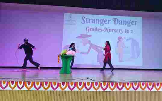 To empower young minds with safety awareness, our school organized an engaging “ *Stranger Danger Workshop”* for classes Nursery to 2 in the School Auditorium. The session was conducted by the talented theatre students of SPS, who used interactive performances and role plays to help children understand how to stay alert and protect themselves in unfamiliar situations.Through lively demonstrations and simple, relatable scenarios, students learned valuable lessons about saying “No” to strangers, seeking help from trusted adults and staying safe in public spaces.