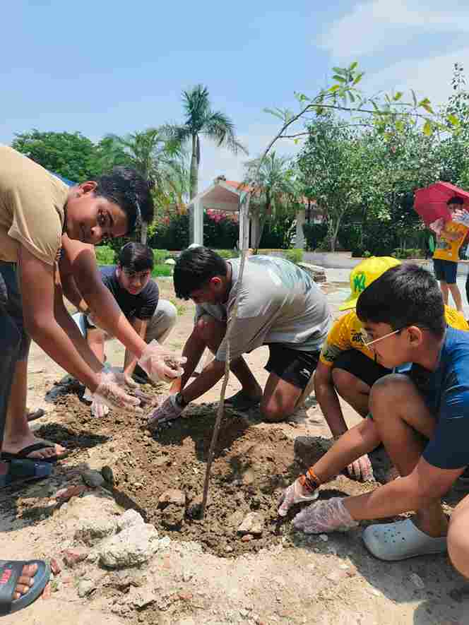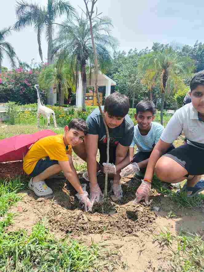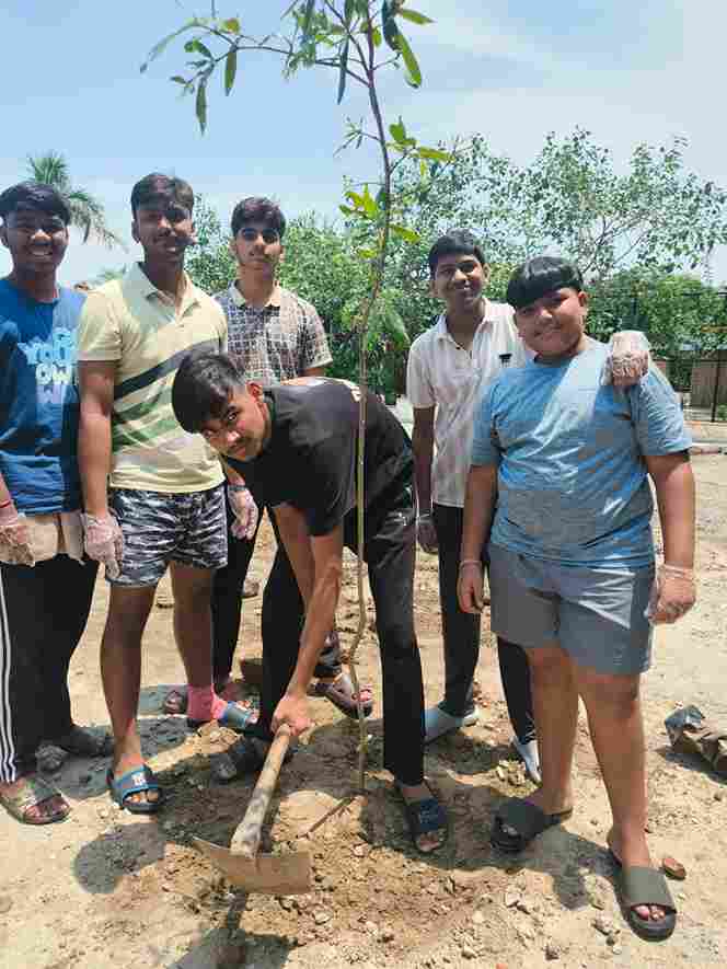 On July 13, 2025, students and staff of the Boarding House at Swarnprastha Public School came together for a tree plantation drive. Guided by our Principal, Mr. Rohit Panda, everyone took part in planting saplings around the garden.